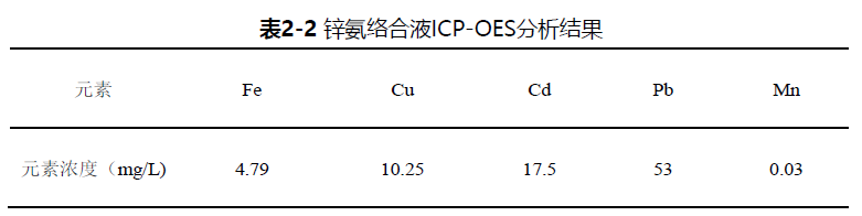 2.3.1 锌氨络合液杂质含量