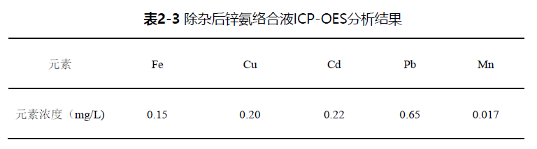 2.3.3 除杂后锌氨络合液杂质含量