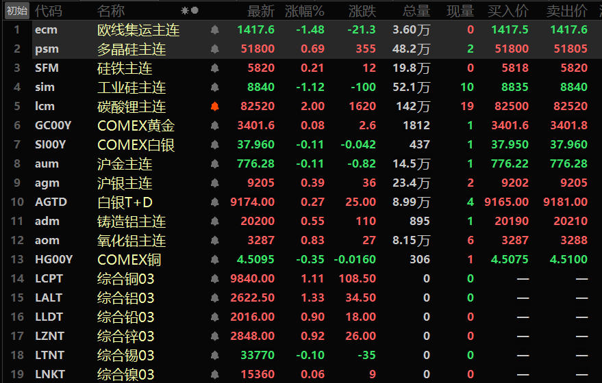 隔夜外盘金属方面,LME基本金属普涨,伦铜涨1.11%,伦铝涨1.33%,伦铅涨0.9%,伦锌涨0.92%,伦锡跌0.1%,伦镍涨0.06%。
