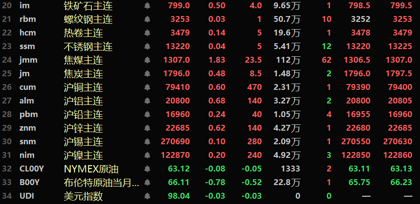 隔夜黑色系均飘红,铁矿涨0.5%,不锈钢、螺纹微涨,热卷涨0.14%。双焦方面:焦煤涨1.83%,焦炭涨0.48%。