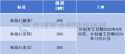据了解,此本项目分为3个标段,预估建设容量为1.72GW,计划开工日期2025年8月20日,计划竣工日期2026年12月31日。