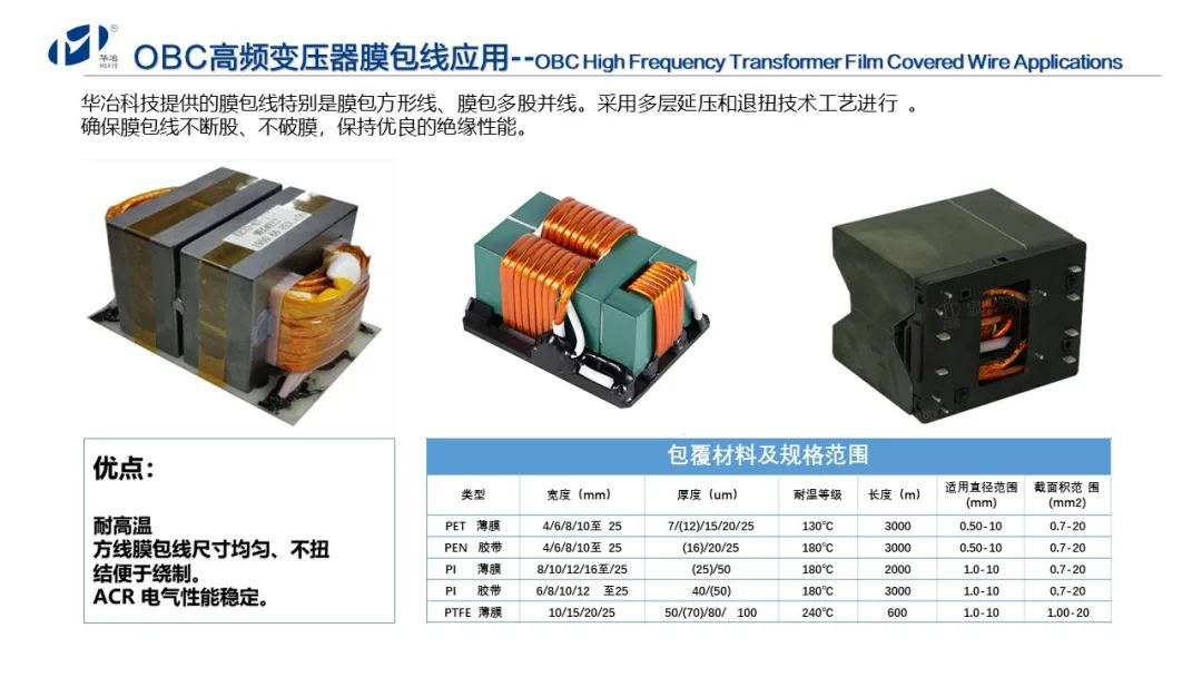 精细自粘型电磁线、耐高温电磁线、复合漆膜电磁线、LITZ线材、自粘利兹丝包线、利兹膜包线等特种电磁线;主要产品规格涵盖∅0.015mm~1.50mm的漆包圆线,∅0.025mm~0.15mm的微细铜合金漆包线及高张力线、各种镀层线,单线规格在∅0.015~0.30mm之内总体外径在∅10.0mm之内的漆包绞线、丝包线、膜包线,以及截面积在0.003mm²~1.0mm²的小方线、微扁线、小扁线;在导体形材方面,可以提供圆形、方形、矩形、扁平线、六边形等异形产品;在导体材料方面可以提供高纯度铜、合金和多种贵金属镀层导体。所有漆包线产品既可以按照NEMA MW1000、IEC60317和JIS C3202标准生产,也可以按照客户要求定制生产。