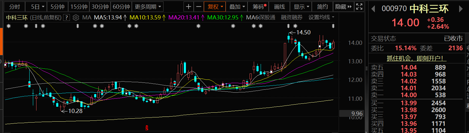 中科三环8月13日股价出现上涨,截至13日收盘,中科三环涨2.64%,报14元/股。