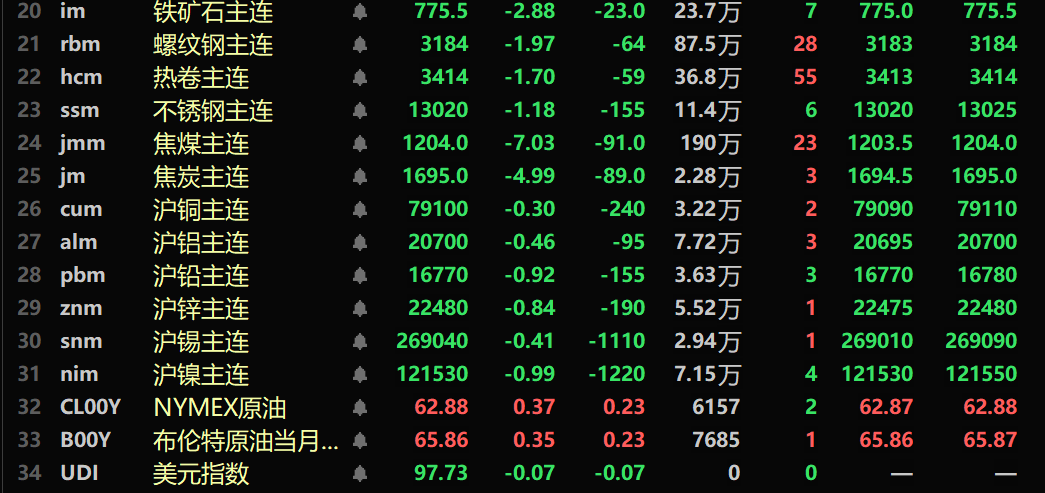 黑色系均飘绿,铁矿跌2.88%,螺纹跌1.97%,热卷跌1.7%。不锈钢跌1.18%。双焦方面:焦煤主力合约跌7.03%,焦炭主力合约跌4.99%。