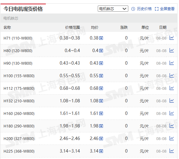 想知更多三相异步电动机、变频电机、直流有刷电机、扁平电机、减速电机、线性电机、空心杯电机、电机铁芯等各种型号含税的周度价格,敬请点击查看SMM电机专区(https://hq.smm.cn/electric-machinery)。