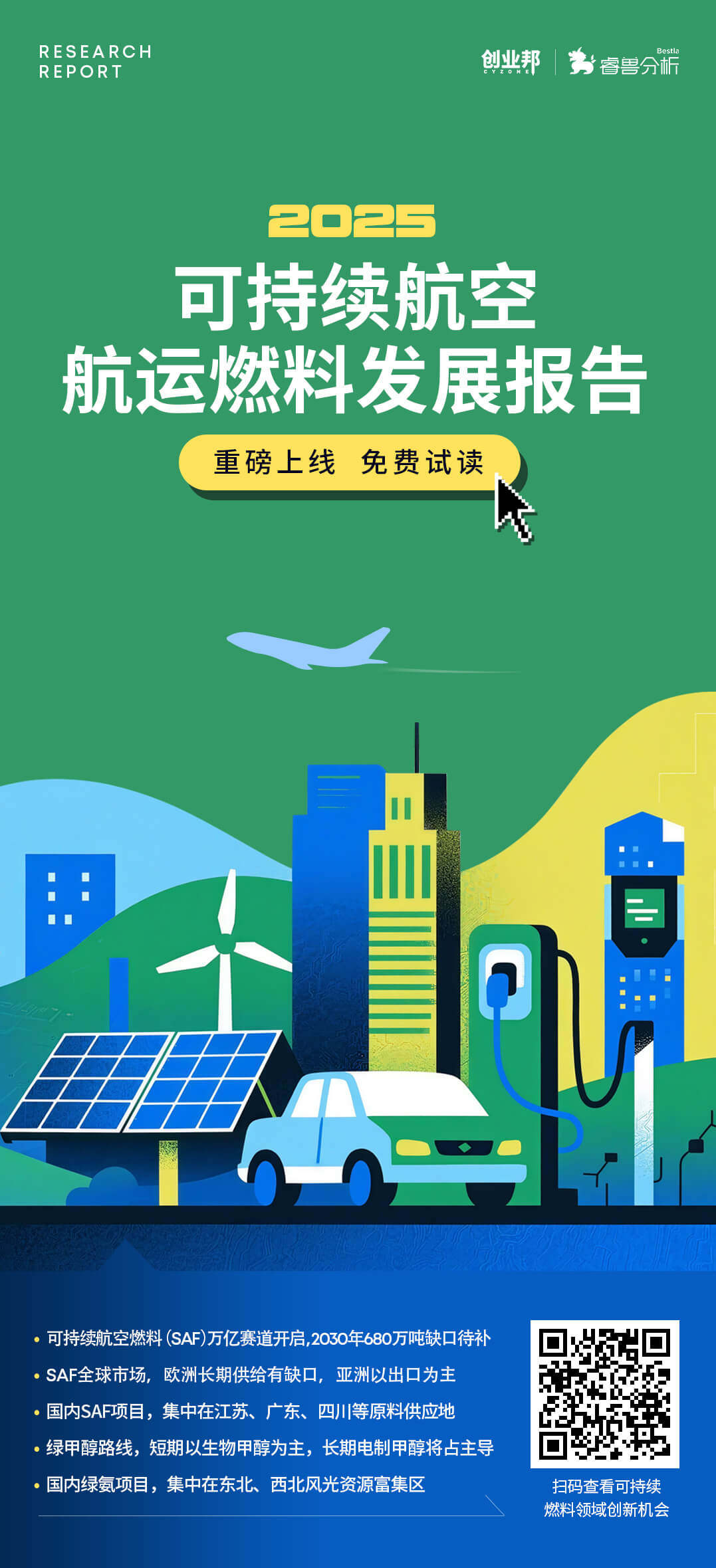 以上内容摘自创业邦《2025可持续航空、航运燃料发展报告》,点击下方二维码试读报告↓