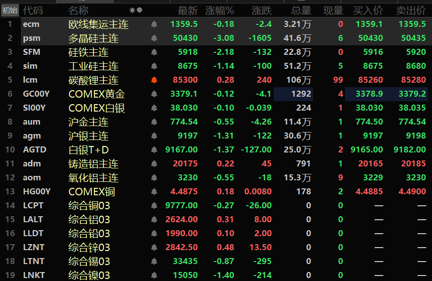 隔夜内盘基本金属普跌,沪锡跌0.76%。沪铜跌0.23%。沪镍跌1.19%。沪铅跌0.06%。沪铝涨0.27%,沪锌微涨。此外,氧化铝主力期货跌0.55%,铸造铝主连涨0.22%。