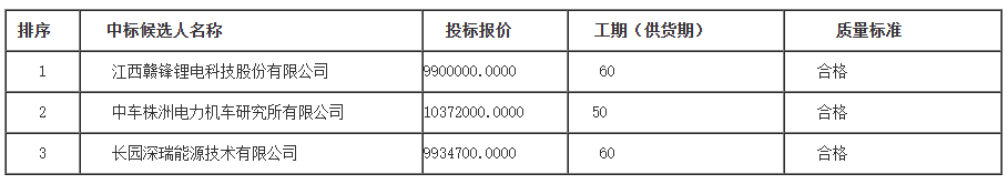 此外,第二中标候选人为中车株洲电力机车研究所有限公司,投标报价10372000元,折合单价0.5186元/Wh。