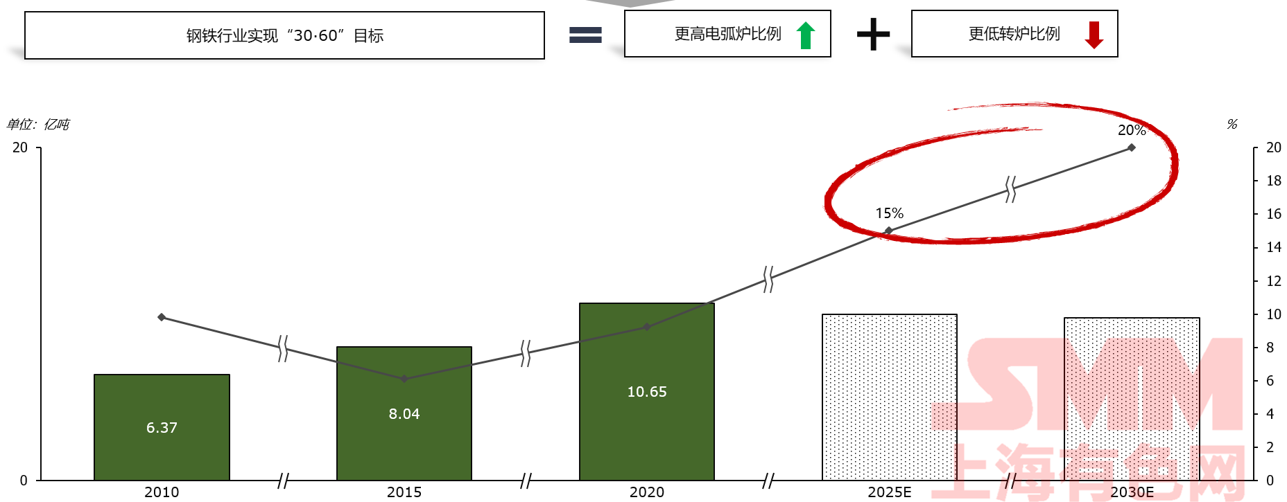 自2016年清理地条钢企业以来,废钢供应显著增加,促使钢厂逐渐提高废钢使用比例。采用高比例的废钢不仅是一种有效的减碳手段,而且无需额外投资,因此越来越多的钢厂正积极开展大比例使用废钢的试验。例如,中国领先的钢铁企业计划将废钢使用率提升至约50%。