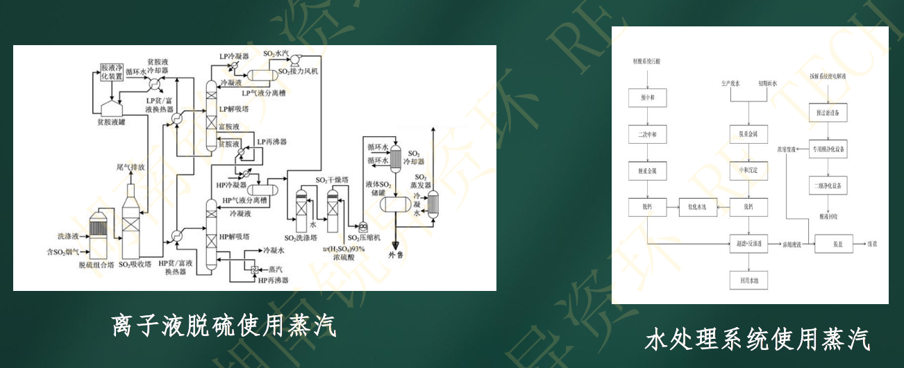 其他的余热使用方式:利用蒸汽拖动电机、利用蒸汽或其他余热进行废盐蒸发。