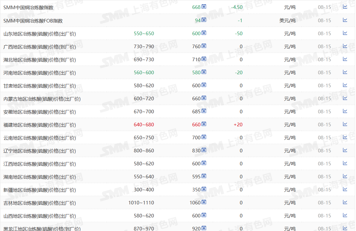 值得注意的是,与 2021-2023 年铜冶炼厂普遍面临硫酸胀库问题(部分企业甚至需倒贴费用处置冶炼酸)的情况不同,自 2024 年以来,硫酸价格重心整体上移。这一变化在不同程度上缓解了铜冶炼企业因铜精矿加工费下移所面临的经营压力。