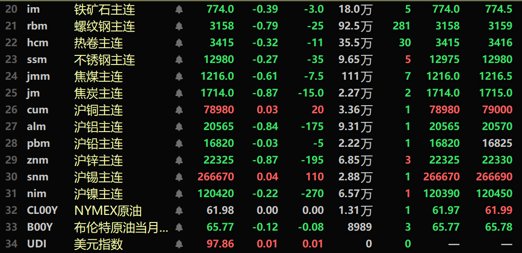 黑色系均飘绿,铁矿跌0.39%,螺纹跌0.79%,热卷跌0.32%。不锈钢跌0.27%。双焦方面:焦煤主力合约跌0.61%,焦炭主力合约跌0.87%。