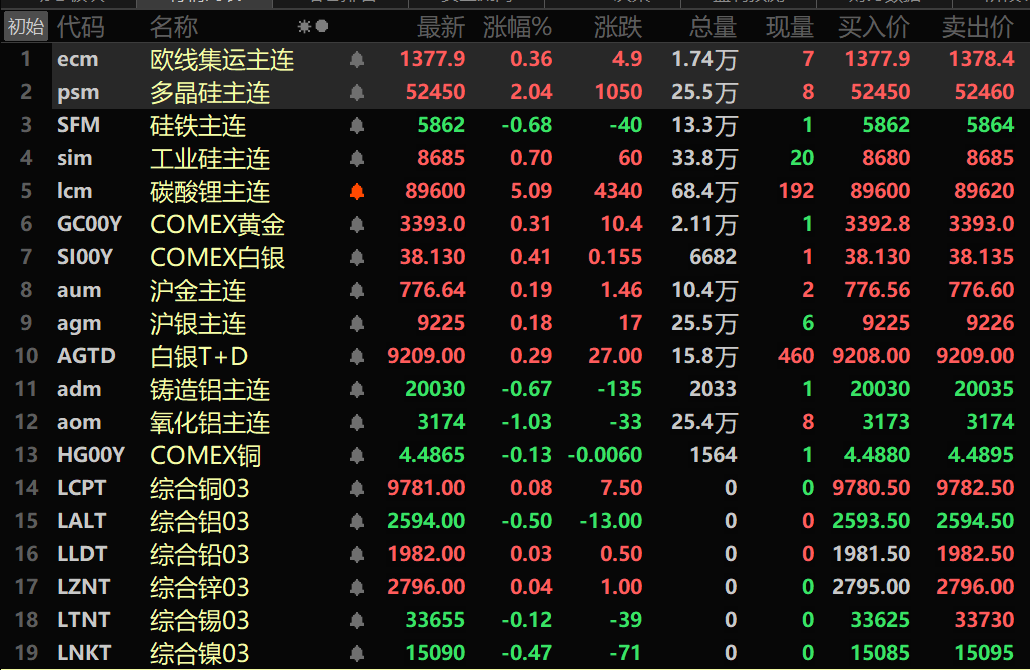 此外,铸造铝主连期货跌0.67%,氧化铝主连跌1.03%。碳酸锂主连涨5.09%,工业硅主连涨0.7%。多晶硅主连涨2.04%。