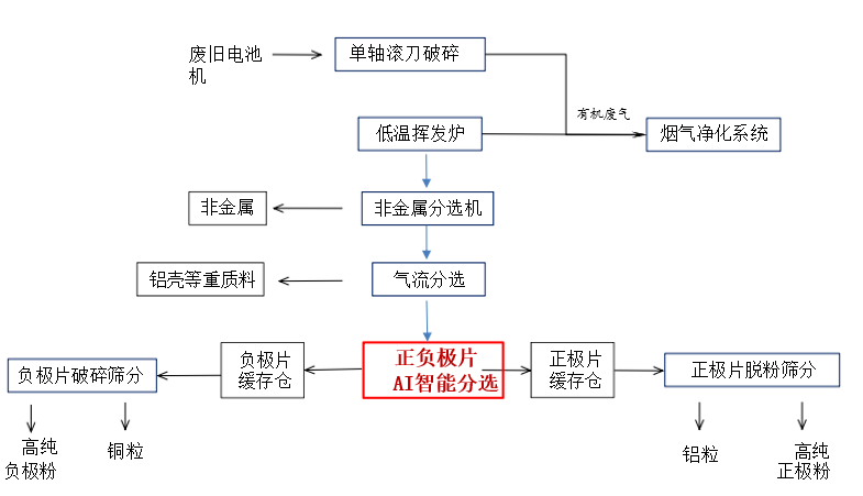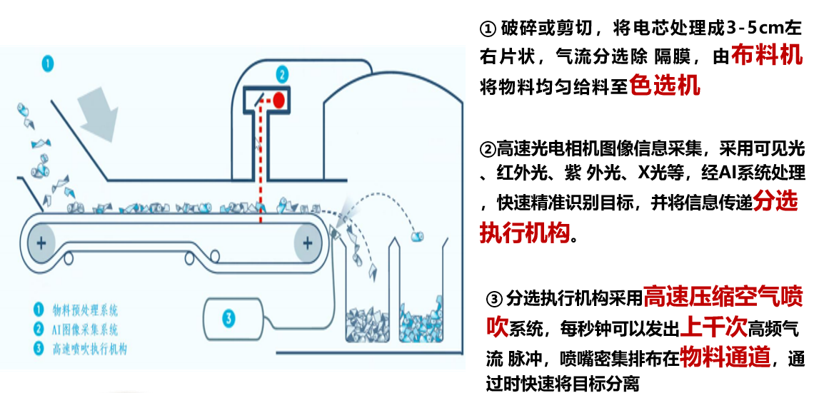 缺点:对来料一致性有要求(解决方案,带电破碎后精细分选,如何精分?)