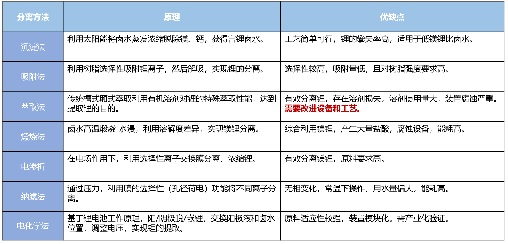 4.吸附法、电化学法、膜法等卤水中 除镁之后的含锂溶液提
