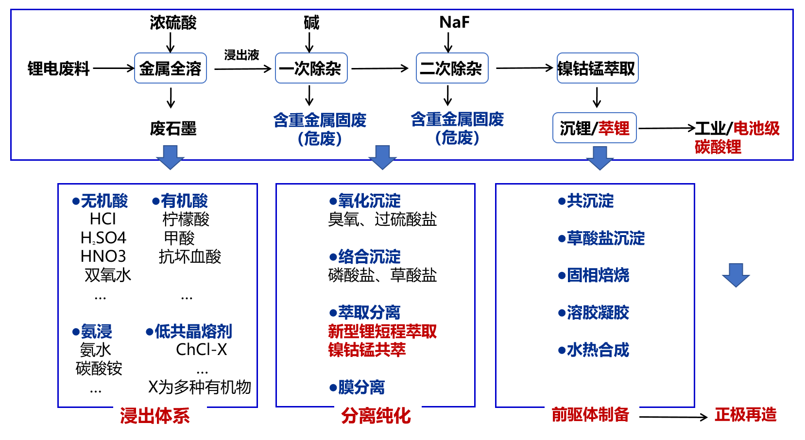 国内锂电池回收-湿法工艺段关键元素循环技术