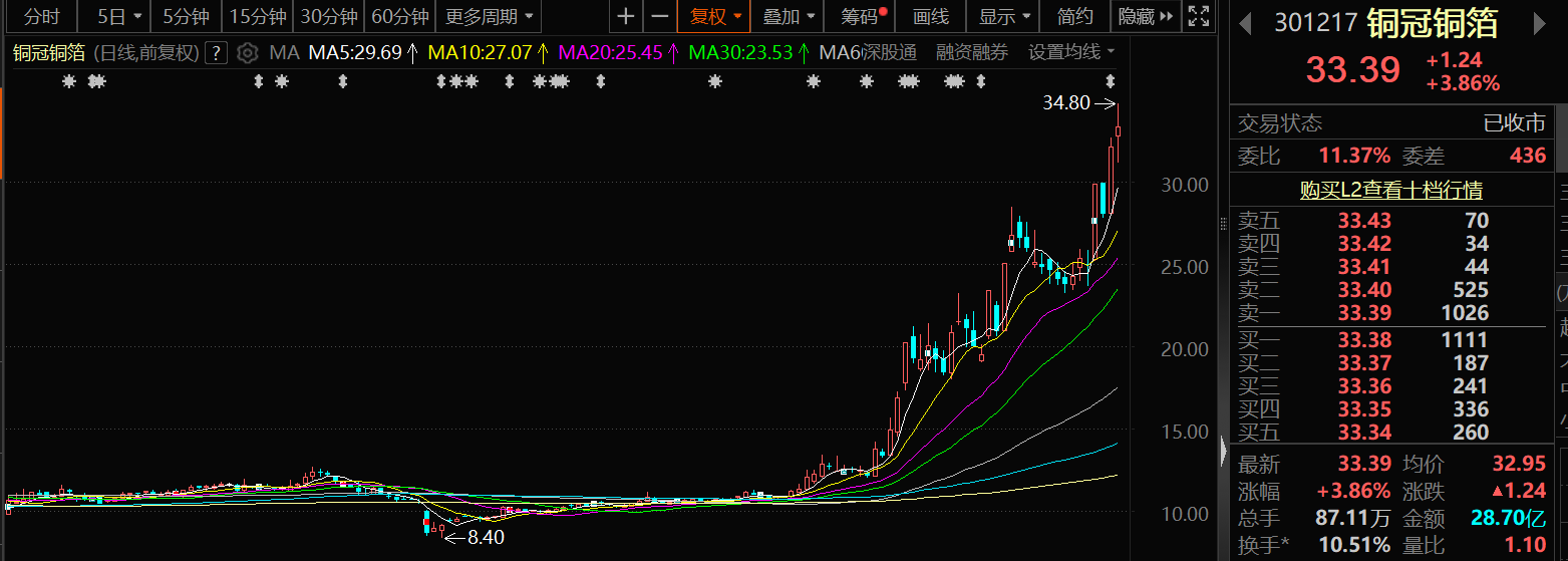 8月18日,铜冠铜箔股价出现上涨,截至18日收盘,铜冠铜箔涨3.86%,