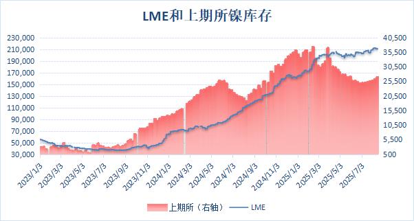 以下为2025年8月以来LME和上期所镍库存数据:(单位:吨)