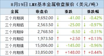 其他金属方面,LME三个月期锡上涨148美元,或0.44%,收报每吨33,850.0美元。