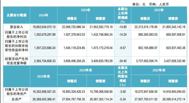 驰宏锌锗此前发布的2024年年报显示:2024年,公司实现营业收入约188.03亿元,同比减少14.8%;归属于上市公司股东的净利润约12.93亿元,同比减少14.24%;基本每股收益0.2539元,同比减少14.24%。