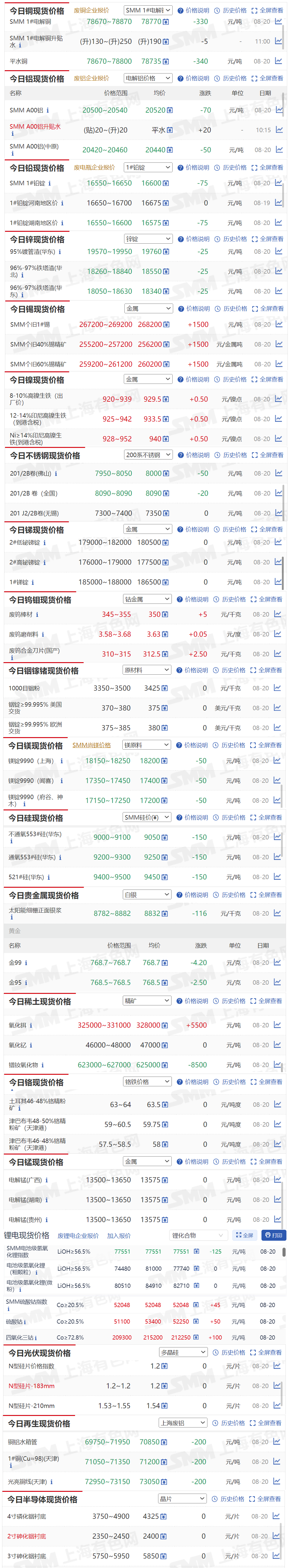 ►SMM 2025/8/20 国内知名再生铅企业废电瓶采购报价