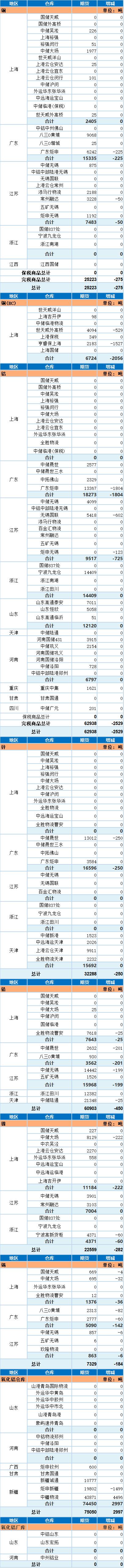6月29日上海期货交易所金属库存日报