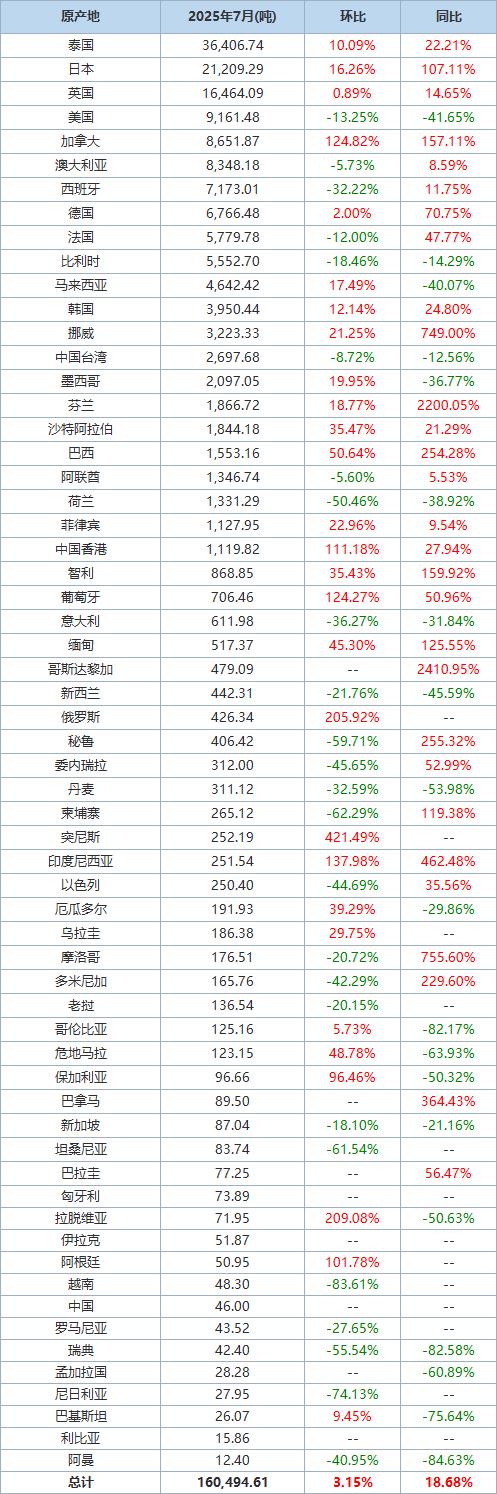 以下为根据中国海关总署官网数据整理的2025年7月废铝进口分项数据一览表: