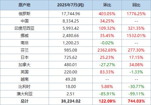 以下为根据中国海关总署官网数据整理的2025年7月未锻压镍进口分项数据一览表: