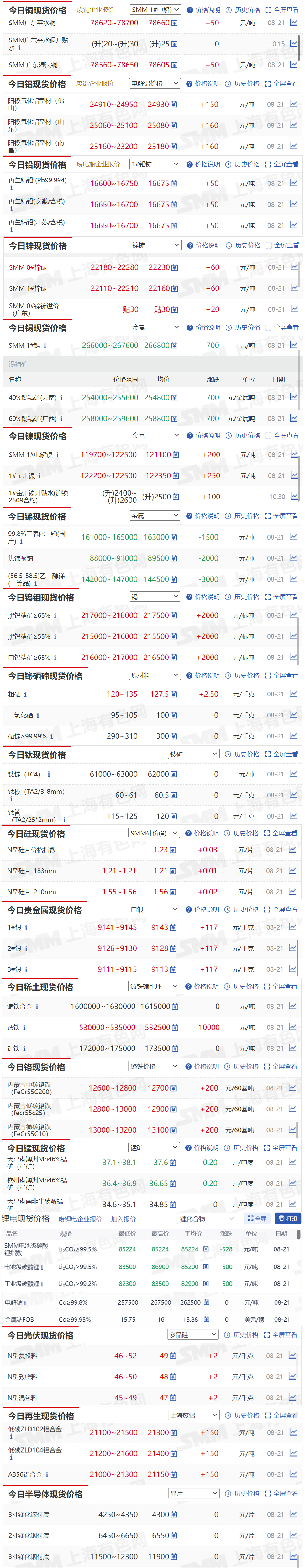 》订购查看SMM金属现货历史价格走势