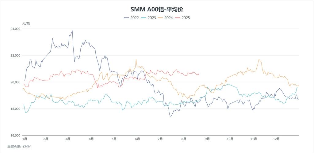 原材料价格:周期内(2025.8.18-2025.8.21)电解铝均价重心下行,SMM A00周均价在20585元/吨,较上期周均价下滑0.48%。综合来看,短期内消费仅边际改善,铝锭库存存在再度累库压力,但当前库存总量不高,且安徽、江西等省份部分再生铝企业已收到税收返还政策终止通知,利废企业产能利用率存下滑风险,对原铝消费形成一定支撑。后续铝价需等待铝消费旺季兑现,预计下周沪铝运行区间为 20500-20800元/吨,伦铝运行区间为 2540-2600美元/吨。