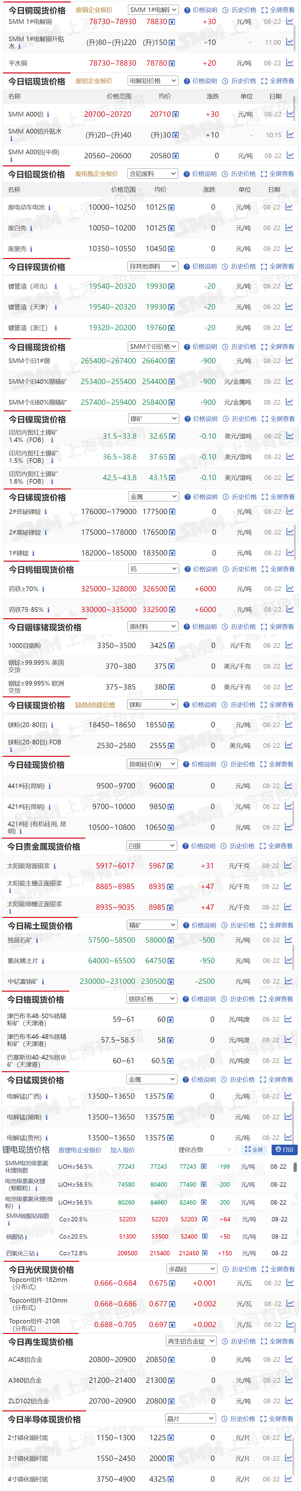 ►【SMM镍午评】8月22日镍价持续走弱,美联储大部分官员依旧对降息保持谨慎姿态