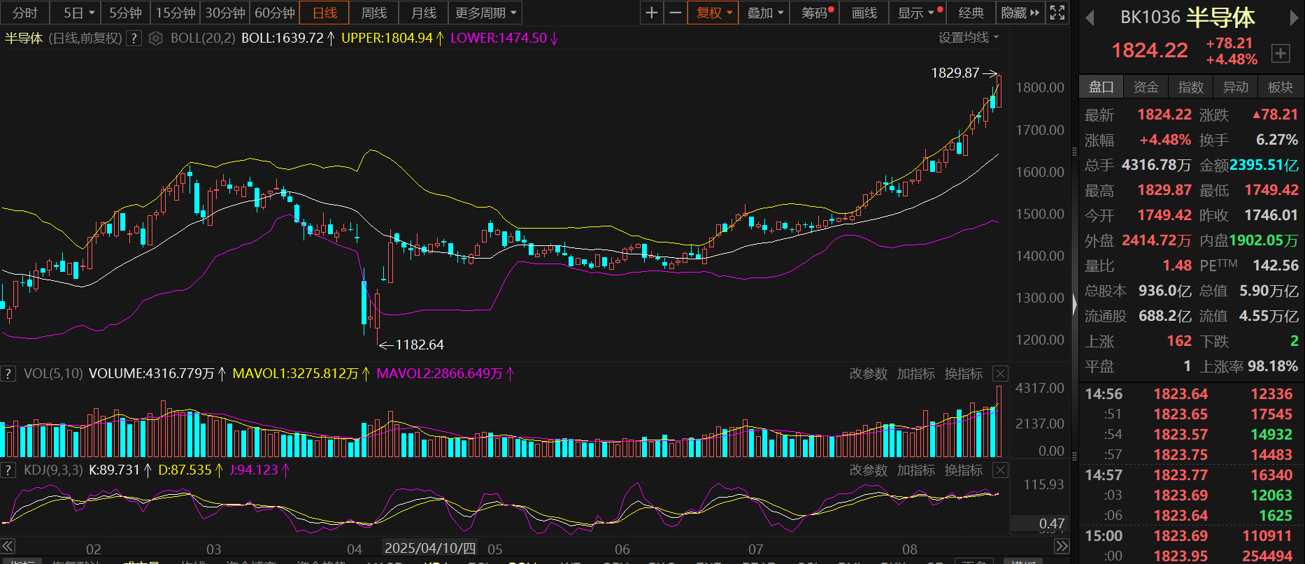 SMM 8月22日讯:今日,A股三大指数早盘集体走高,午后沪指站稳3800点,沪深300指数盘中一度涨逾1.6%,创业板指更是一度涨逾2.6%。板块上,半导体板块盘中大幅拉涨,指数一度涨4.8%,盘中最高触及1829.87的高位,刷新其板块上市以来的历史新高!