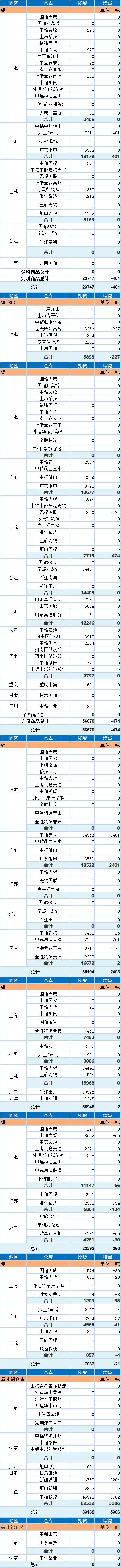 SMM网讯:以下为上海期货交易所8月25日金属库存日报: