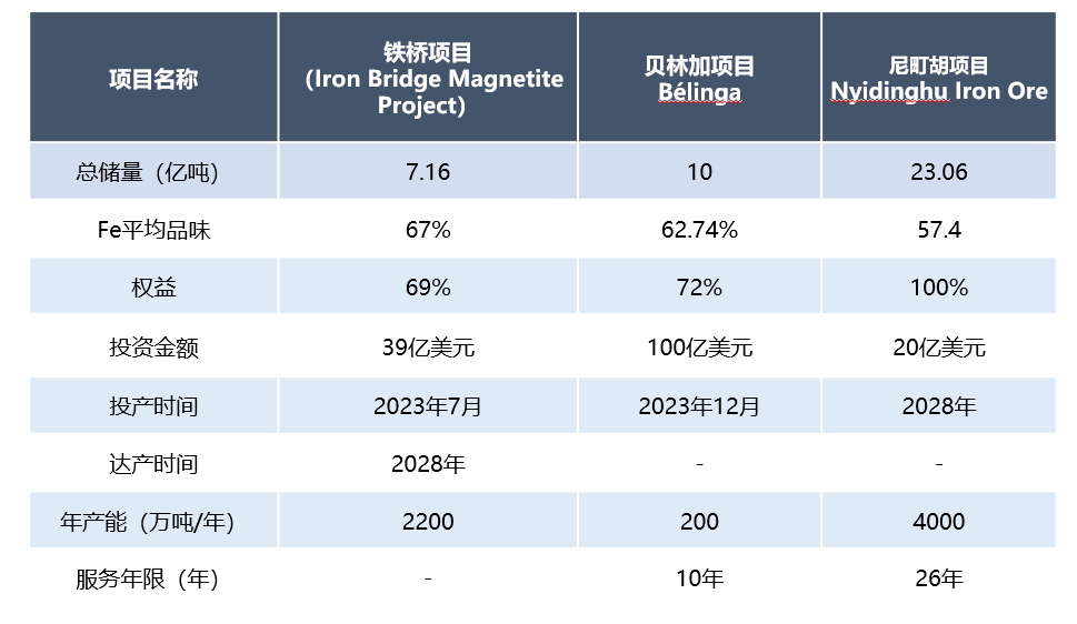 FMG近年增产计划为铁桥磁铁矿项目、加莲贝林加铁矿项目以及尼町胡项目。