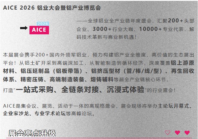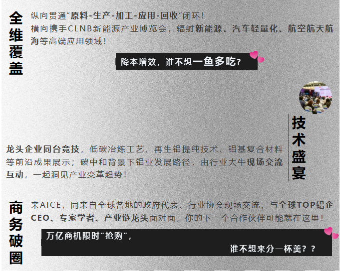 大会聚焦全球铝市场的发展趋势、铝价走势预判、供需平衡、商机对接与技术交流等热点话题,会议将汇聚铝产业链同仁以深度研讨共探行业脉络,为全球铝业擘画发展路径,赋能市场融通合作、推动产业链优化升级!
