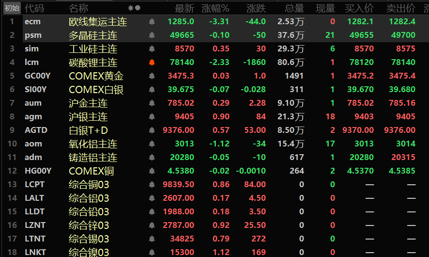 金属市场方面: