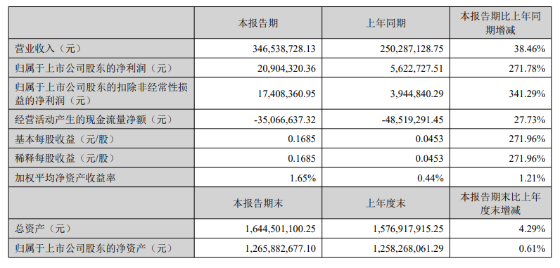 中科磁业日前发布2025年半年度报告,报告期实现营业收入3.47亿元,同比增长38.46%,主要系部分募投项目达产收入增加所致;归属上市公司股东的净利润2090.43万元,同比增长271.78%;扣除非经常性损益后的归属于上市公司股东的净利润1740.84万元,同比增长341.29%;基本每股收益0.1685元。