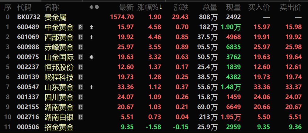 股市方面:贵金属板块29日出现上涨,截至8月29日收盘,贵金属板块涨1.9%,个股方面:中金黄金涨4.58%、西部黄金、山金国际以及赤峰黄金等涨幅居前。