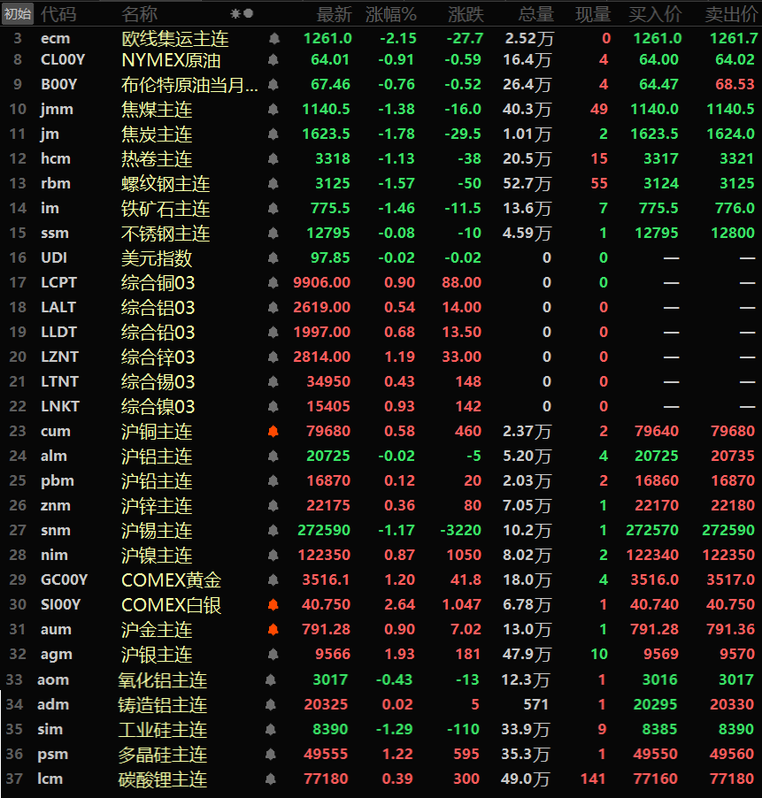 上周五隔夜黑色系方面集体下跌,铁矿、螺纹以及热卷一同跌超1%,铁矿跌1.46%,螺纹跌1.57%,热卷跌1.13%。双焦方面,焦煤跌1.38%,焦炭跌1.78%。