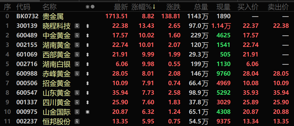 股市方面:贵金属板块9月1日出现大幅飙升,截至9月1日收盘,贵金属板块涨8.82%,个股方面:中金黄金、湖南黄金、西部黄金、湖南白银涨停,晓程科技涨13.43%,赤峰黄金、招金黄金、山金国际以及山东黄金等涨幅居前。