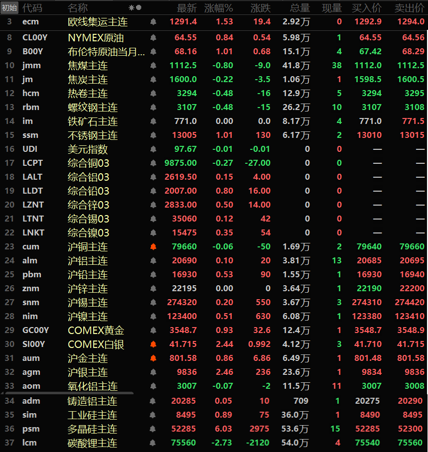 金属市场方面: