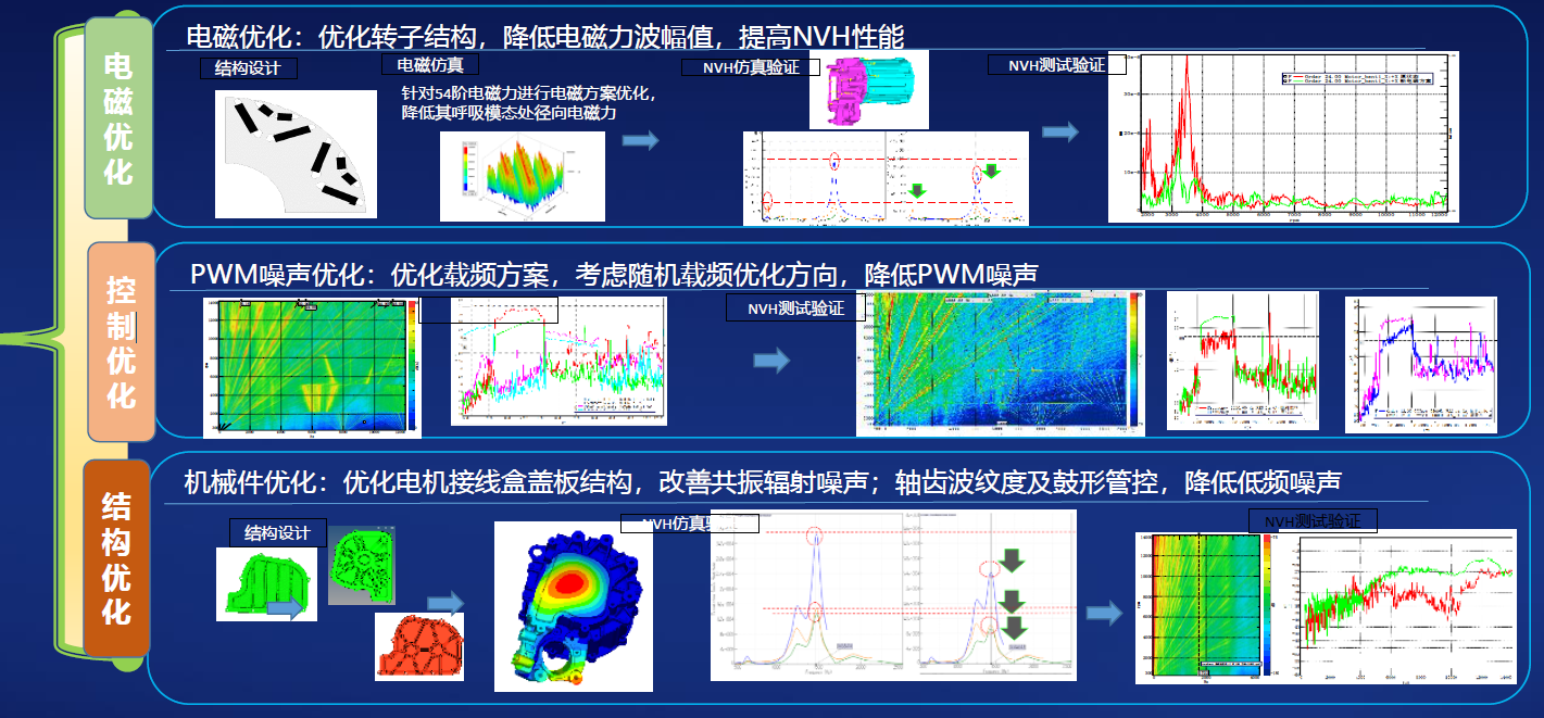 研发团队共同搭建包含电控、电机、齿轮箱及其总成的NVH相关仿真及优化能力,有效保障产品开发和性能达成