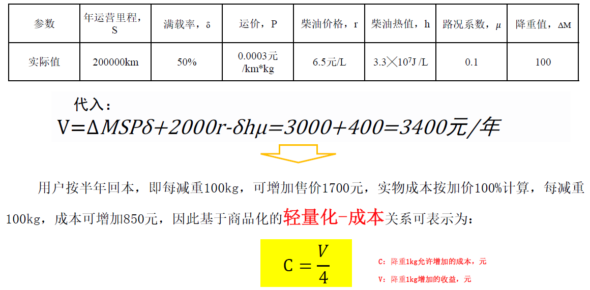 一、整车轻量化的核心 意义 (客户价值计算模型 )
