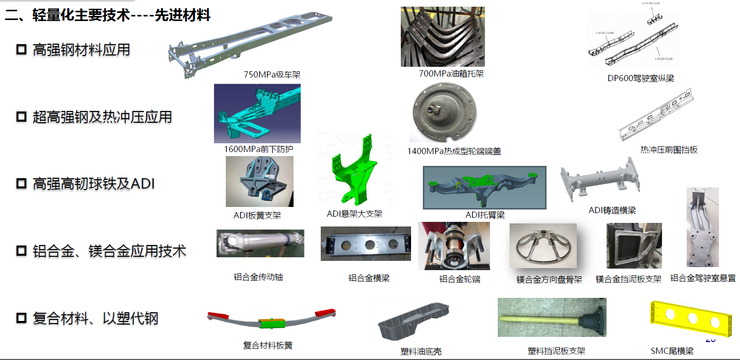 高强钢材料应用;超高强钢及热冲压应用;高强高韧球铁及ADI;铝合金、镁合金应用技术; 复合材料、以塑代钢。