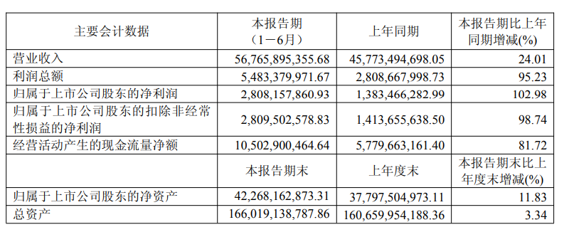 山东黄金发布的半年报显示:2025年上半年,公司深入贯彻落实党中央、国务院决策部署和山东省委、省政府工作要求,统筹推进稳增长、提质效、推改革、强创新、防风险等工作,黄金产量及主要经济指标创历史新高,项目建设高效推进,科技研发成效显著,企业核心竞争力进一步增强,为圆满完成年度工作目标奠定坚实基础。着力抓好生产运营,主要经济指标再创新高科学制定年度预算和生产经营计划,逐级分解指标、层层压实责任,一企一策差异化考核。扎实开展生产系统优化“提升年”活动,持续加强生产技术管理和先进采选冶工艺方法试验推广,不断提高精细化、集约化开采水平。坚持开源与节流并重、挖潜与增效并举,强化成本管控,实现稳产增产、增收增效。2025年上半年,公司矿产金产量24.71吨;自产金销量23.60吨;实现营业收入567.66亿元,同比增加109.92亿元,增幅24.01%;实现利润总额54.83亿元,同比增加26.75亿元,增幅95.23%;归属于上市公司股东的净利润28.08亿元,同比增加14.25亿元,增幅102.98%;加权平均净资产收益率9.81%,同比增加4.80个百分点;基本每股收益0.57元,较上年同期的0.26元增加0.31元。