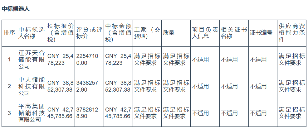 北极星储能网获悉,9月1日,中海油能源发展股份有限公司发布海油发展-清洁能源公司磷酸铁锂电池储能系统物资采购专有协议中标候选人公示。排名前三的中标候选人分别为江苏天合储能有限公司、中天储能科技有限公司、平高集团储能科技有限公司。