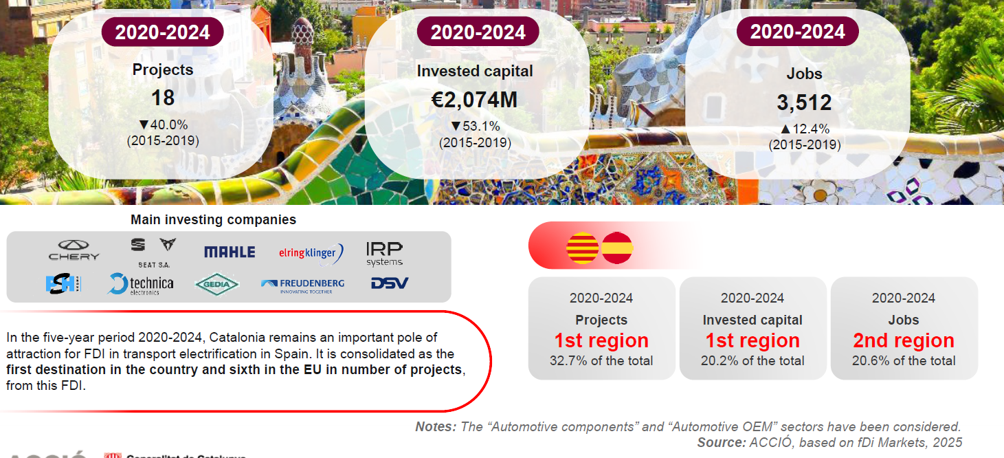 在2020-2024年的五年节点内,加泰罗尼亚仍然是西班牙交通电气化领域外国直接投资的重要吸引地。它巩固了作为该国第一大目的地的地位,在欧盟项目数量上排名第六。