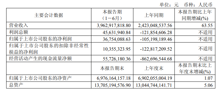 嘉元科技此前发布的半年报显示:上半年,公司实现营业收入39.63亿,同比增长63.55%;净利润3675.41万元,同比扭亏为盈。嘉元科技表示:上半年,公司营业收入较上年同期增加 63.55%,主要系报告期内公司铜箔产品销售量增加所致;上半年,利润总额、公司归属于上市公司股东的净利润、归属于上市公司股东的扣除非经常性损益的净利润分别较上年同期增加 16,748.65 万元、14,195.23 万元、13,317.25 万元,主要系报告期内公司毛利率上升所致。