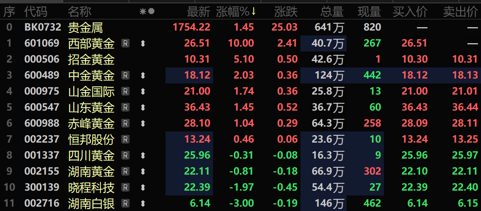股市方面:贵金属板块9月3日出现逆势上涨,截至9月3日10:56分,贵金属板块逆势涨1.45%,个股方面:西部黄金三连板,招金黄金、中金黄金、山金国际以及山东黄金等涨幅居前。