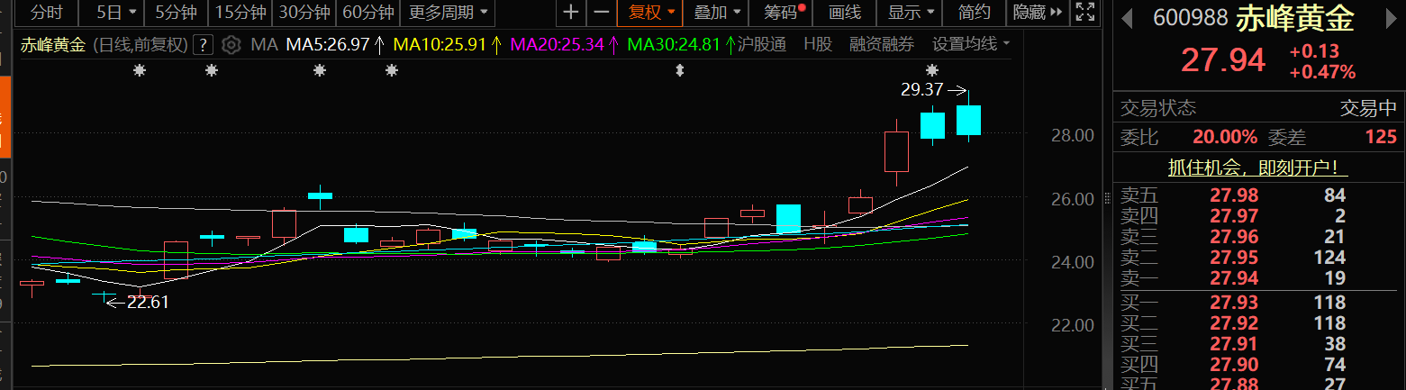 9月3日,赤峰黄金股价逆势出现上涨,截至3日14:12分,赤峰黄金涨0.47%,报27.94元/股。